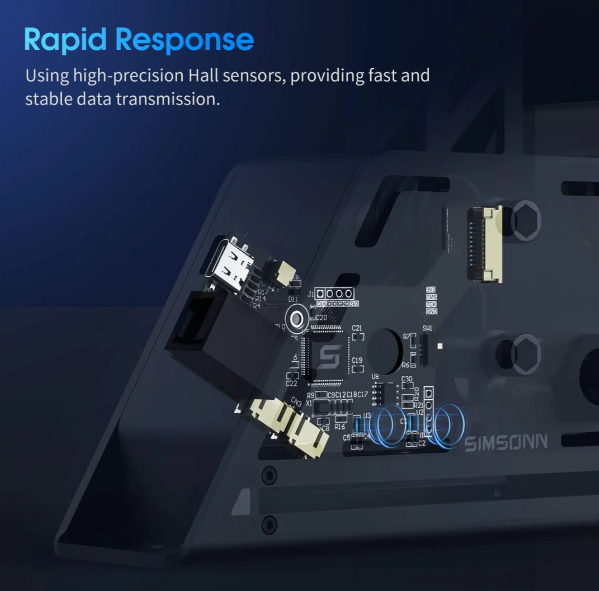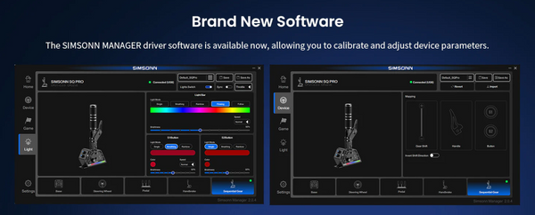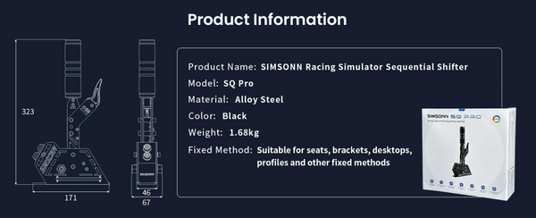 The Simsonn SQ Pro Shifter, a new addition to the Pro X series, combines aeroplane-grade aluminum and high-strength alloy steel for exceptional durability. With adjustable height, strength, and angle, it offers a fully customizable shifting experience. Precision Hall sensor technology ensures smooth, responsive gear shifts, while the anti-interference dual-chip design guarantees stability. Featuring programmable buttons and USB connectivity, this shifter delivers professional-grade performance at an accessible price, ideal for both beginners and pros.