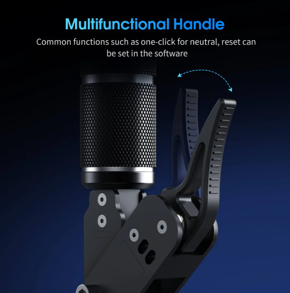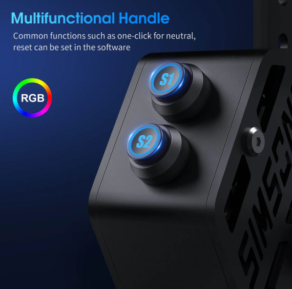 The shifter features a multi-functional handle that can be programmed to perform various tasks like neutral resets and other actions, giving you flexibility and control in your racing simulations. -
